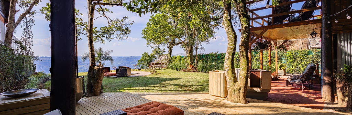 No interior da Cabana, cada detalhe convida ao aconchego: lareira, fogão a lenha, churrasqueira e banheira proporcionam experiências únicas em todas as estações. Do lado de fora, a vista para o vale transforma cada amanhecer e entardecer em um espetáculo particular.
